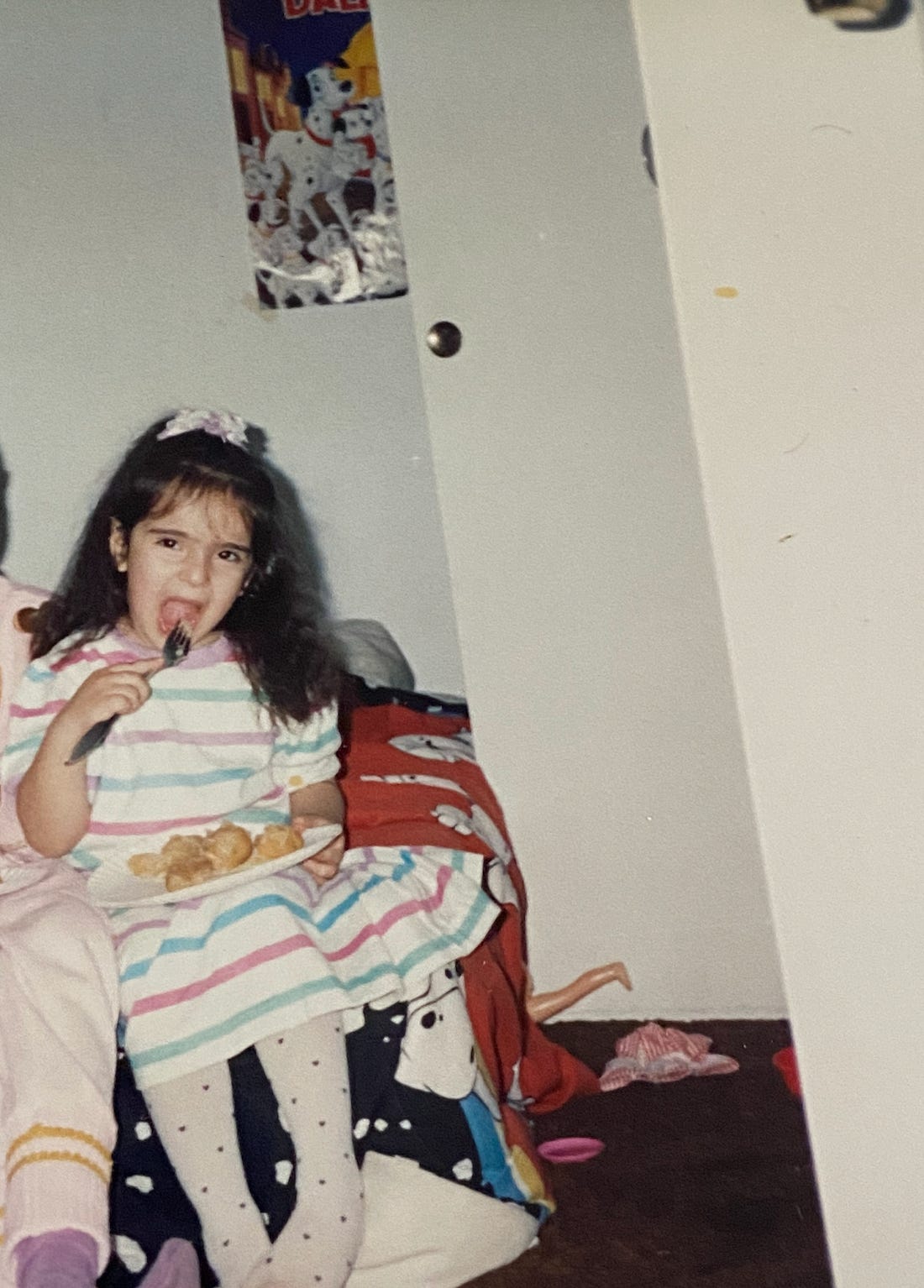 I’ll leave you with this photo of me on my birthday, eating, what else? Potatoes.